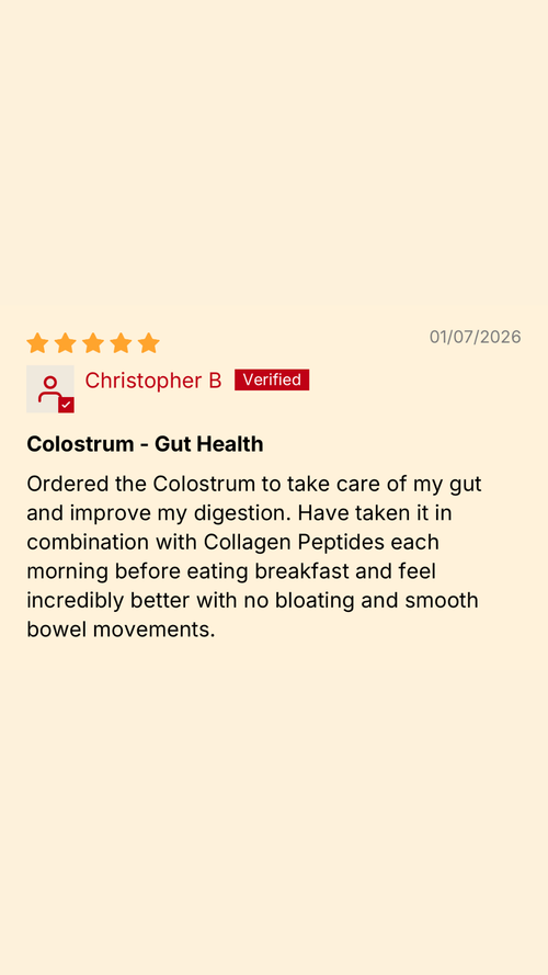 Supports the Gut Barrier: Collagen supplies amino acids involved in connective tissue, while colostrum contains bioactive proteins that support normal gut and immune processes.